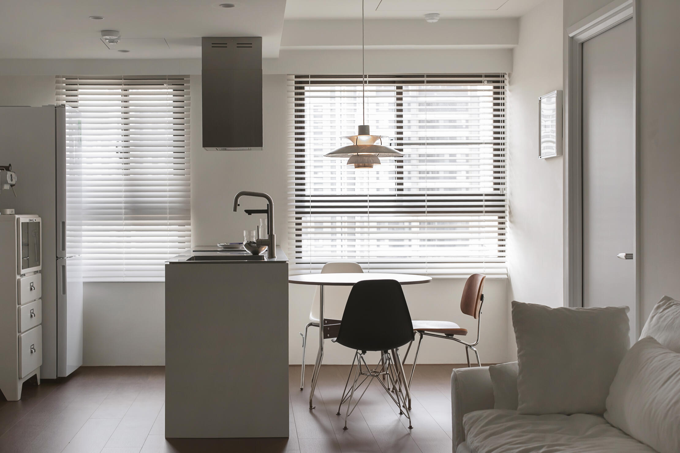 此案的業主是對生活品味有極高要求的年輕夫妻,他們夢想擁有一個不僅能料理,更能成為家人、朋友情感交流核心的開放式廚房。挑戰在於,如何在極簡的純白基調中,創造出溫暖、不冰冷且充滿細節的空間。(2) 我們的設計解方